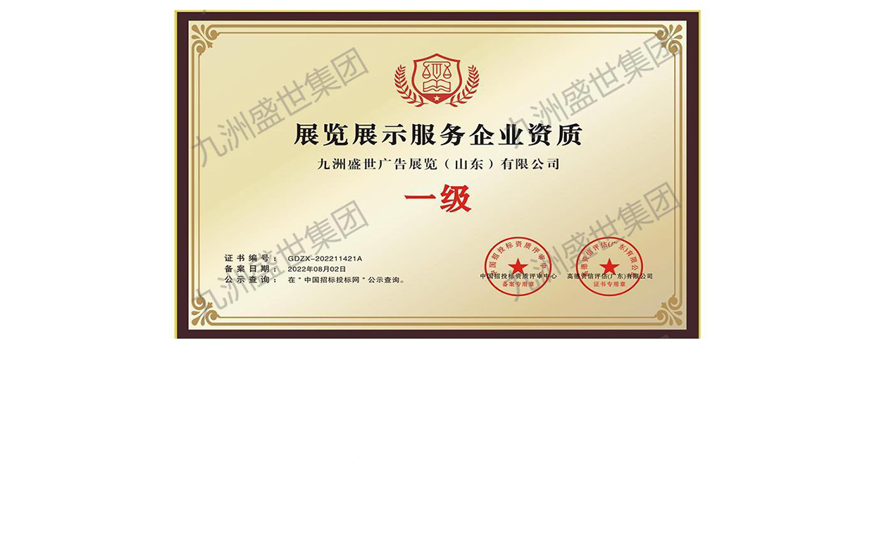 九洲盛世廣告展覽(山東)有限公司是極具時(shí)代創(chuàng)新實(shí)力的展覽展示整合服務(wù)商,專(zhuān)注于展覽展示策劃創(chuàng)意、空間設(shè)計(jì)、虛擬仿真、互動(dòng)科技、影視制作、軟件開(kāi)發(fā)、系統(tǒng)集成、工程運(yùn)營(yíng)的跨界整合,致力于為各類(lèi)政企客戶(hù)提供多媒體展館綜合解決方案。我們致力于為客戶(hù)提供咨詢(xún)、策劃、設(shè)計(jì)、科技、工程落地一站式標(biāo)準(zhǔn)化服務(wù),業(yè)務(wù)涵蓋企業(yè)品牌展廳、企業(yè)產(chǎn)品展廳、文化博物館、地產(chǎn)主題館、科技館、黨建主題館等各類(lèi)多媒體展館一體化總包工程。一直以來(lái),我們始終秉承“創(chuàng)新、專(zhuān)注、高效”的理念,關(guān)注客戶(hù)體驗(yàn)不斷提高核心競(jìng)爭(zhēng)力。